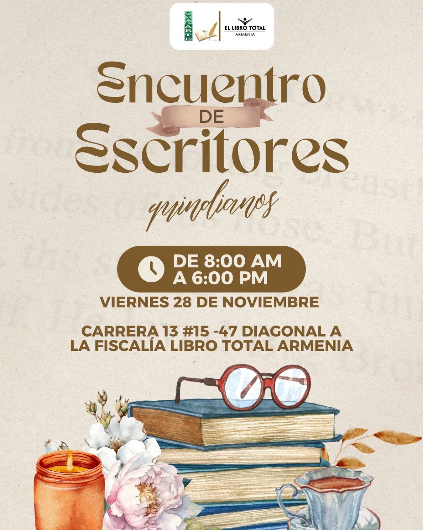 Este editorial obedece a un hecho de suma importancia acontecido el día viernes 28 de noviembre cuando sale a la palestra pública el Primer Encuentro de Escritores Quindianos, organización que nace de una idea expresada por la profesora Emelia Peña y el acompañamiento de un gran periodista, Albert Deylan, quien en forma callada, pero constante ha impulsado todo el trabajo cultural en el Quindío a través de un medio regional de gran reconocimiento: la Revista Punto y Aparte.