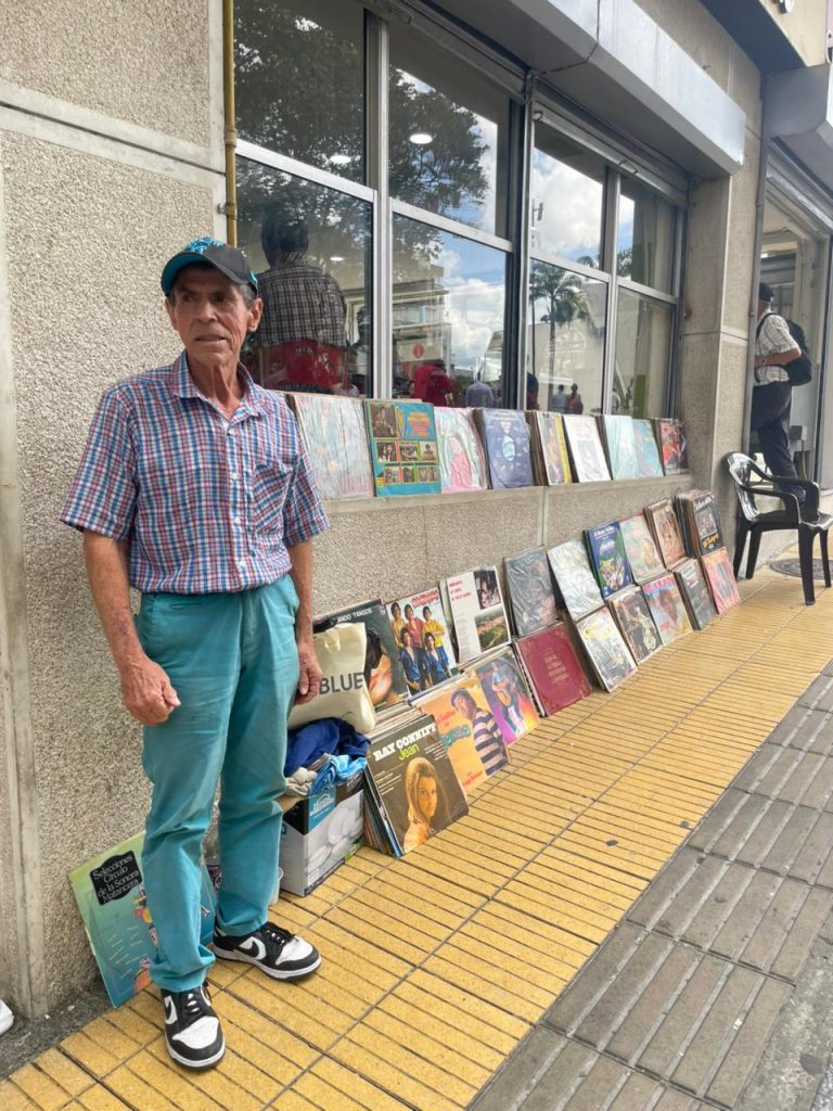 La nostalgia, ese hogar de regreso. Estoy en el centro de Armenia. Me dirijo al negocio más espontáneo, informal y con una tradición muy singular para los melómanos. Un local público, sin puertas, protocolos ni mobiliario. Un negocio de unas cuantas horas, pero que jamás cierra para los transeúntes. Allí no hay auxiliares, certificados de comercio, facturas, ni Iva. Mucho menos avisos ni bienvenidas. Su publicidad es un pequeño muro donde se expone, en orden espontáneo, su mercancía de nostalgia. Su aviso más destacado son las carátulas descuidadas de ídolos pasados de moda. Saludo a “Mechas”, el vendedor más legendario de discos de vinilo de la capital del Quindío. Esta vez me tiene guardado tres discos de mi gusto: Joven y activo de Paul Anka, Selección de canciones de los Tres Reyes del sello RCA Víctor y Canciones a Latinoamérica de Los Chalchaleros. Me dice que hoy tiene música nueva, ya que unas señoras de Sevilla, Valle le trajeron música de los años 70s. Me muestra con entusiasmo, pero hoy sólo me llevo estas pequeñas joyas musicales para soñar esta tarde.